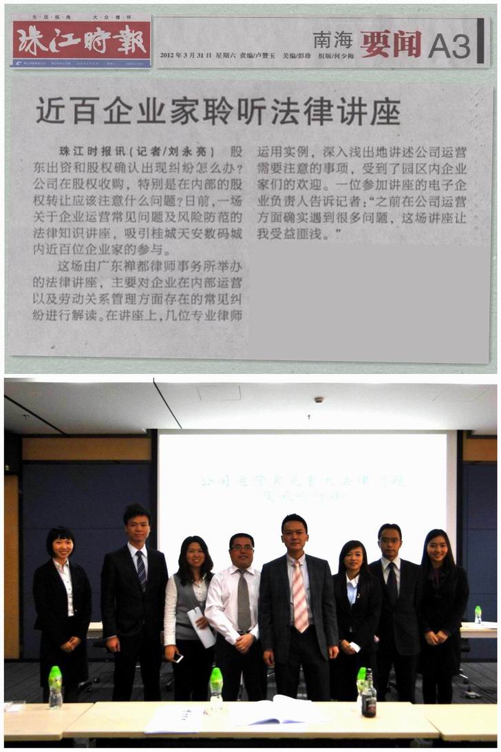 - 珠江时报2012年3月31日报道我所法律讲座情况