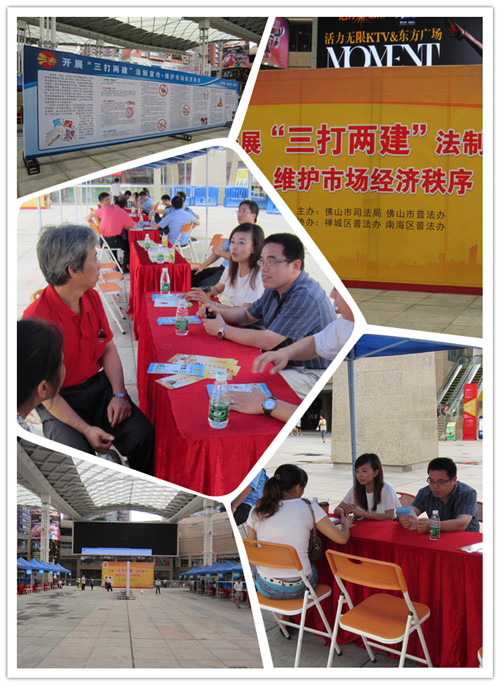 作为我市“三打两建”宣传的系列活动,2012年7月23日上午市司法局、市普法办在禅城区东方广场开展“三打两建”法律咨询活动。活动以开展“三打两建”法制宣传,维护市场经济秩序为主题。现场主要包括法律咨询,宣传栏展览等活动。